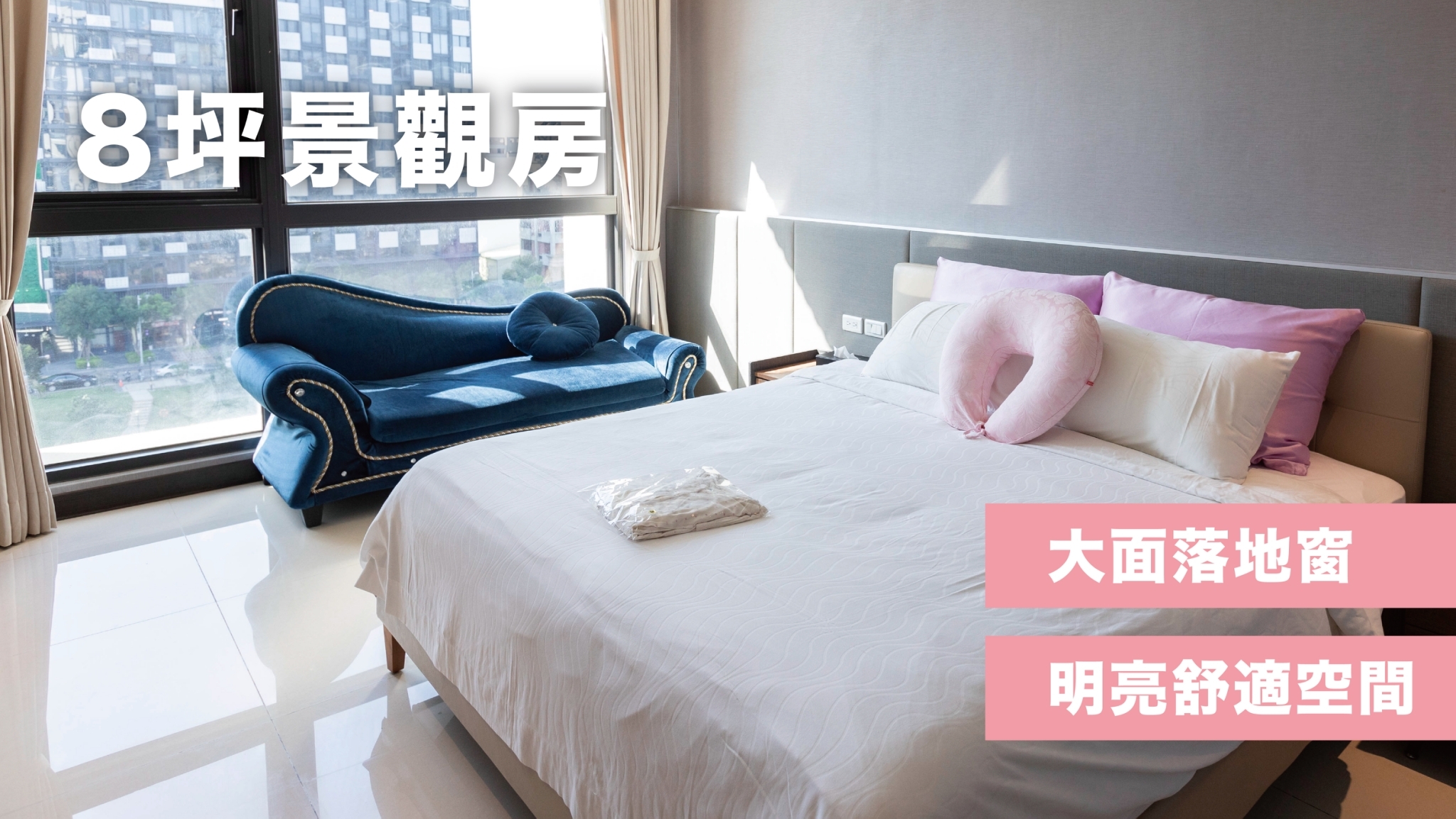 🏡 8坪景觀房 – 房間設計寬敞明亮,擁有大面落地窗,為您提供舒適的住宿環境。